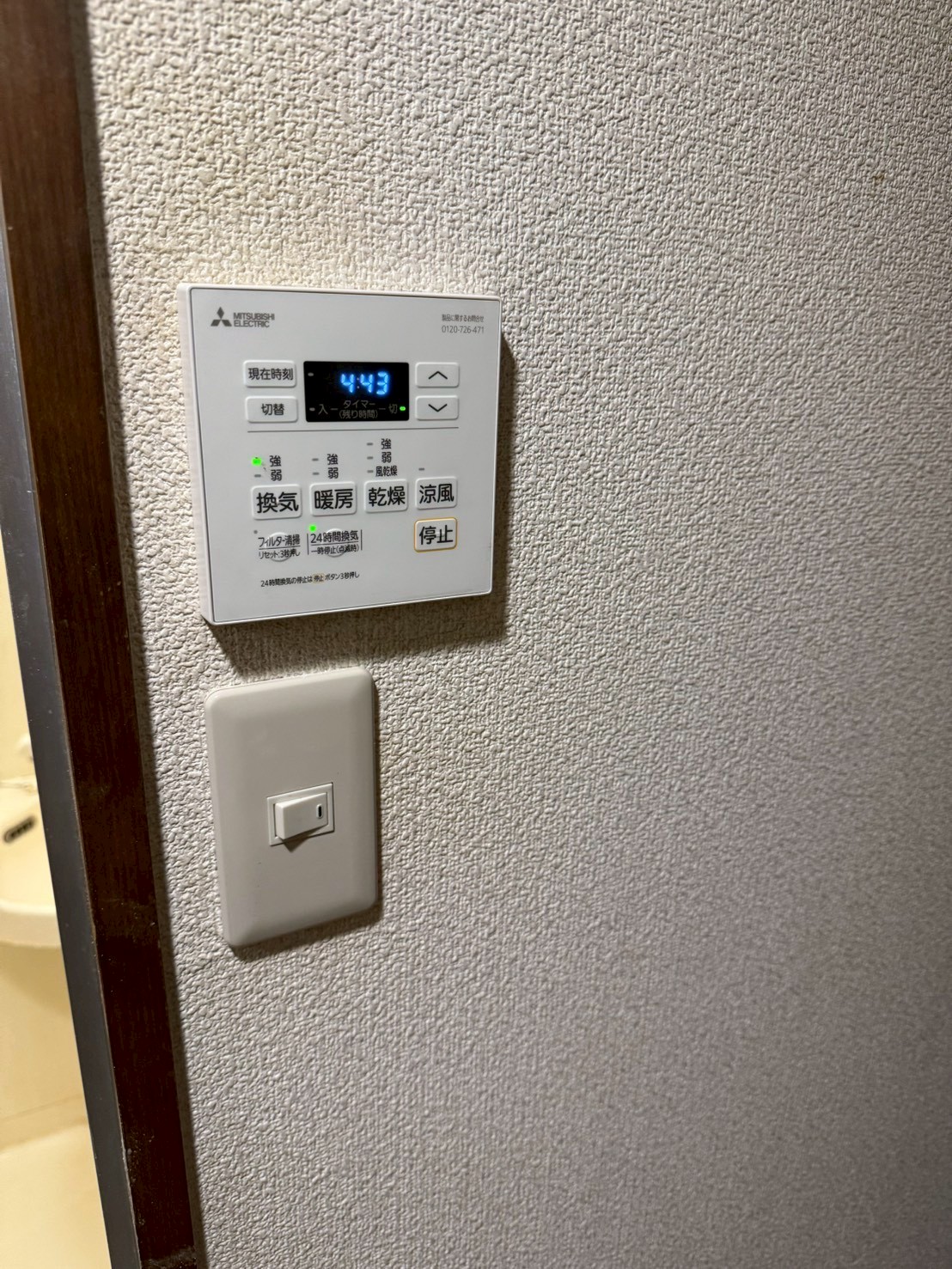 換気扇はオーナー様の支給品。お風呂用の換気扇工事となります。換気扇から浴室暖房付きに変更いたしました。